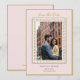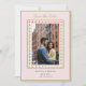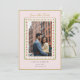 Elegante moldura floral à mão de aquarela étnica em um cartão de fundo rosa pálido de casamento Salve a Data com foto do casal.