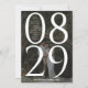 Este cartão de identidade moderno e ousado apresenta a data do seu casamento em algarismos extras em branco sobre um fundo fotográfico. Os nomes dos casais e o local do casamento são exibidos dentro do zero durante meses de janeiro a setembro e à esquerda do numeral um para meses de outubro a dezembro. Este chic salve o cartão de data fará uma declaração e dará o tom para o seu casamento. A parte de trás da data de gravação tem espaço para uma fotografia adicional.