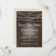 Salve os convites de Data têm um fundo de madeira, luzes elegantes e texto branco. Eles são belos Designs Gêmeos para enviar aos seus convidados, e todo o texto é personalizável. Aproveite esta oportunidade para criar um evento exclusivo e memorável com nossos convites personalizáveis.
