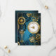 Turquesa, texturizada, fundo steampunk com latão e engrenagens douradas, chave prateada e relógio. Estilo Steampunk.