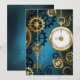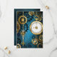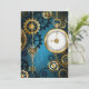 Turquesa, texturizada, fundo steampunk com latão e engrenagens douradas, chave prateada e relógio. Estilo Steampunk.