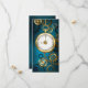 Turquesa, texturizada, fundo steampunk com latão e engrenagens douradas, chave prateada e relógio. Estilo Steampunk.