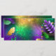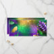 Fundo de grãos de cereais, iridescentes, textualmente, com manchas roxas, amarelas e verdes, decoradas com penas e miçangas brilhantes. feriado Mardi Gras.