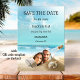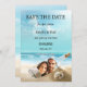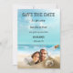 A funny beach wedding Save the Date card featuring a bottle washed ashore with your custom photo. In the advanced editor you can rotate your photo if needed. A beautiful wedding announcement for a beach or destination wedding.