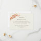 Faça uma declaração de elegância subestimada com esta simples e clássica placa de receptáculo de casamento outono baseada em texto em creme quente. Use a opção de personalização para mudar cores e fontes para se adequar ao seu tema de casamento. Personalize todo o texto deste cartão de inserção de recepção e ajude a direcionar seu convidado para o local de continuação.