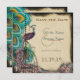 Pavão funky sentado numa gaiola de pássaros caprichosa e penas de pavão Pergaminho queimado falso funky e fofo Save the Date. Casamento de gaiola de pássaro com penas de pavão - programas correspondentes, menus, cartões de inserção e mais