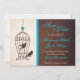 Estas salvas a data de núpcias apresentam uma fantástica gaiola de pássaros com espirais e um coração azul teal, e duas aves bonitinhas, em marrom chocolate, penduradas contra um marfim, em papel texturizado com escrita falsa. Uma fita azul brilhante e brilhante separa uma barra lateral marrom-chocolate, que contém a data de gravação em marfim e lacre. O texto, em scripts alternados e fontes de serifa clássicas, é completamente personalizável.