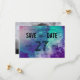 Para o casal cuja história de amor está escrita entre as estrelas...um casamento com a galáxia... exceto os cartões de data... que seguramente vão chamar a atenção de todos! Os detalhes de texto são personalizáveis e estão sobre um fundo de espaço em roxo, azul, verde, rosa e branco.