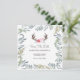 Convites VG quadrado com galhos de veado para salvar a data apresenta um verde exuberante e rosas cor-de-rosa bonitas que enquadram os detalhes do seu casamento. Uma cor verde-sage complementar adorna a parte traseira do seu cartão de salvar a data. Uma escolha rústica, mas sofisticada para casamentos de primavera, verão, outono e inverno. Criado por Victoria. Para ver mais visite www.zazzle.com/vginvites