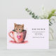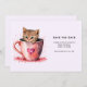 Guarde o cartão de encontro com um gatinho fofo. Sentado em uma equipe que parece adorável. Uma pequena pata pendura na borda. Os corações rodopiam por toda a parte. Doce e caprichosa.