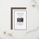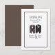 Um terno de smoking em dois estilos representando o casal nesse cartão de data salvo. Um quadro marrom envolve os detalhes do casamento. Há um cartão de convite e RSVP na minha loja também. Usei a escolha de papel Felt Ecru para melhorar este belo convite. Se não quiser que esta escolha verifique-os.