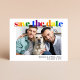 Uma salva única da data para o seu dia especial, este anúncio moderno apresenta "salvar a data" em tipografia ousada nas cores do arco-íris orgulho gay. Adicione sua foto, nomes em uma tipografia elegante, e data de casamento na frente. Ao contrário, adicione seus nomes de cheio na mesma tipografia elegante que a frente, e sua data de casamento, localização e site na web em uma simples tipografia mínima.