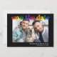 Uma salva única da data do seu dia especial, este anúncio moderno apresenta "salvar a data" em tipografia ousada nas cores do arco-íris orgulho gay contra um fundo preto dramático. Adicione sua foto, nomes em uma elegante tipografia branca, e data de casamento na frente. Ao contrário, adicione seus nomes de cheio na mesma tipografia branca elegante, e sua data de casamento, localização e site na web em uma simples tipografia branca.