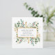 Este maravilhoso casamento de Natal salvou a data com um verde de férias e folhas com folhas falsas de ouro e groselhas vermelhas, e um quadro central de ouro num fundo branco moderno. Sua foto pessoal vai para o fundo, cercada por outro quadro geométrico dourado com verde de inverno.
