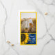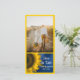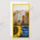 Anuncie sua cerimônia de verão ou casamento de outono e a recepção com o feliz Girassol Amarelo no Casamento Azul Salve o Cartão com fotos de Data. Este elegante casamento florescente personalizado mantém o cartões de fotos de data com uma fotografia floral de um girassol amarelo em fundo azul. Inpo perfeito para um evento de festa de verão.
