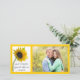 Ponha o tom para os vossos núpcias de verão ou outono com a classe Girassol Amarelo no Casamento Branco Salve o Cartão com fotos de Data. Este elegante casamento de flores personalizado mantém o cartões de fotos de data com uma fotografia floral de um girassol amarelo no caule, num vaso de vidro com um fundo branco brilhante. Inpo perfeito para a cerimônia de casamento e evento de celebração de recepção do seu festival de jardim de verão.