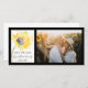 Defina o tom para os vossos núpcias de verão ou outono com o bonito Girassol Amarelo em Casamento Branco de Cores Brancas Salve o Cartão com fotos de Data. Este elegante casamento de flores personalizado mantém o cartões de fotos de data com uma fotografia floral pintada digitalmente de um girassol amarelo num caule verde num vaso de vidro com fundo branco. Inpo perfeito para cerimônia de casamento e cerimônia de recepção do festival de jardim de verão.