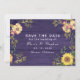 Anuncie seu dia especial com este lindo cartão de "salve a data" de casamento de outono com girassol e flores roxas. Com uma textura de madeira rústica adornada com girassóis vibrantes, delicadas flores roxas e rendas elegantes, este design captura a essência de uma celebração romântica de outono.