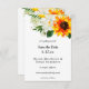 Envie um cartão de data para que seus convidados estejam prontos para comemorar seu casamento ou festa com este floral de girassol e rosa branco salve o cartão de data. em branco