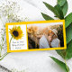 Ponha o tom para os vossos núpcias de verão ou outono com a classe Girassol Amarelo no Casamento Branco Salve o Cartão com fotos de Data. Este elegante casamento de flores personalizado mantém o cartões de fotos de data com uma fotografia floral de um girassol amarelo no caule, num vaso de vidro com um fundo branco brilhante. Inpo perfeito ou ideia para a cerimônia de casamento e evento de recepção do jardim de verão. Disponível como um convite impresso para envio por correio ou como um download digital para fácil compartilhamento digital online.
