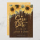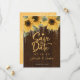Este belo conjunto de casamento de girassol rústico salva os cartões de data incorpora uma encantadora mistura de elegância e atração rural. Cada carta, dimensionada em A7 (5 x 7 polegadas), apresenta um tema de design cativante de girassóis colocados sobre um fundo de madeira escura, perfeito para um casamento de outono ou verão. O estilo design é claramente rústico, oferecendo uma sensação calorosa e convidativa de que maravilhosamente anuncia seu dia especial. No verso, o cartão apresenta um contraste encantador com um fundo amarelo e um girassol desenhado à mão sobre uma matiz mais leve, acrescentando um toque artístico à estética geral. Essas cartas são a escolha ideal para casais que buscam misturar beleza natural com um toque de sofisticação rústica para o anúncio do casamento.