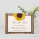 Esses cartões salve a data são perfeitos para qualquer casal planejando um casamento rústico do país. A design apresenta um girassol brilhante e bonito sobre um fundo de efeito de madeira marrom rústica. O design simples pode ser personalizado para se adequar ao seu evento especial e será o anúncio perfeito para qualquer partido temático de chic no país, incluindo chás de panela, noivados, chás de casamento, festas de aniversário e muito, muito mais.