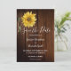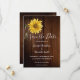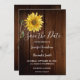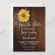 Girassol rústico em madeira de celeiro, cartão de aviso de casamento campestre.