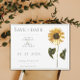 Anuncie o dia do seu casamento com este Sunflower Salve o Anúncio de Data. Save the Date design apresenta um girassol de cor d'água e um design de texto moderno. Adicione fotos e detalhes do casamento para personalizar.