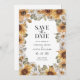 Girassol Salve A Data. Adicione um traço de sol ao seu casamento com estes lindos girassóis amarelos, cor d'água pintados à mão, margaridas brancas e folhas verdes e coloridas de terracota. Perfeito para um romântico casamento de outono ou jardim de verão ao ar livre, estes maravilhosos anúncios de casamento bóquio salvarão a data trarão o tom para o seu dia especial. Encontre produtos coordenadores nos Concursos de Casamento de Girassol com Cores de Água Rústica.