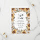 Salve o Dia do Girassol. Adicione um toque de sol ao seu casamento com esses belos girassóis amarelos pintados à mão em aquarela, margaridas brancas e folhas verde-sage e terracota. Perfeito para um romântico casamento rústico de outono ou um casamento de verão ao ar livre no jardim, esses anúncios de boho chic para salvar a data do casamento irão definir o tom do seu dia especial. Encontre produtos coordenados nos Convites de Casamento Rústicos de Girassol em Aquarela.