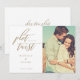 Às vezes as coisas mudam. Atualize seus convidados de casamento com a nova data do casamento com nosso cartão moderno de salvar a data. O design apresenta um layout simples e moderno com um espaço reservado para foto do casal. "Giro Inesperado" exibido em caligrafia moderna. Personalize com o nome do casal, data e local do casamento. O lado reverso apresenta sua própria mensagem pessoal e "Ok, Novo Plano" em caligrafia moderna.