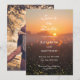 This rustic and romantic design features a golden-hour nature scene with a sprawling tree and magical fireflies—an ideal choice for an outdoor country wedding or a romantic bohemian fall celebration. The warm orange and yellow sunset backdrop creates an atmosphere of timeless romance and natural beauty. Elegant modern calligraphy adds a refined touch, beautifully contrasting with the vintage, woodsy aesthetic. This design is perfect for couples planning a forest wedding, barn wedding, woodland ceremony, or any romantic outdoor celebration.