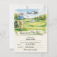 Announce an upcoming celebration on the green with this stylish Golf Retirement Party Save the Date Card featuring a beautiful watercolor illustration of a golfer swinging on a scenic golf course. The fresh green fairway, red flag on the putting green, and relaxed country club atmosphere create the perfect theme for a retirement celebration dedicated to the love of golf.