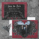 Transport your guests to a world of dark, enchanting elegance with our vintage gothic wedding save the date card. The deep, aged burgundy wine background sets the stage for a striking contrast, as bold white text emerges from intricate black text boxes. Three-dimensional gothic elements adorn the design, capturing the essence of mystery and romance. Your favorite photo fills the back, enshrouded in a black heart of twisting vines and black roses. Unleash the magic and set the tone for an unforgettable wedding day. Created by Simply Farmhouse Press.