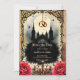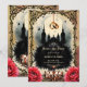 This gothic wedding design captures the dark beauty of everlasting love — a black cathedral bathed in moonlight, golden wedding rings suspended like celestial promises, and roses blooming in crimson passion.Perfect for those who believe that love doesn’t have to be light to shine forever.
