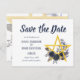Enviar um design de Processamento Floral Personalizado do Wiccan Salve the Date com um modelo de Processamento Floral Personalizado do Wiccan com um pentáculo de ouro com rosas pretos e elementos florais góticos sobre um fundo branco.
