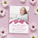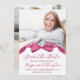 Bonito graduação salve o cartão de data com uma foto do formando enfeitada com uma fita bonito com um arco cor-de-rosa na rosa de fúcsia e outra foto no verso. Graduação exclusiva, salve o cartão de data para a festa de formatura de sua filha com um arco rosa impresso decorando sua foto do formando e fontes bonito em cor-de-rosa. Uma formatura feminina salva a data com foto e nome e um arco rosa ilustrado.