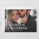 Anuncie sua data de casamento com esses cartões salve a data ousados e modernos baseados em tipografia. Design apresenta uma foto horizontal ou orientada a paisagem para solteiro de sangramento de cheio, com seus nomes sobrepostos em letras brancas unidas por um e-mail sobredimensionado. Personalize com a data e o local do casamento e adicione detalhes adicionais ao sábio sólido verde de volta, se desejar.