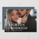 Anuncie sua data de casamento com esses cartões salve a data ousados e modernos baseados em tipografia. Design apresenta uma foto horizontal ou orientada a paisagem para solteiro de sangramento de cheio, com seus nomes sobrepostos em letras brancas unidas por um e-mail sobredimensionado. Personalize com a data e o local do casamento e adicione detalhes adicionais às costas, se desejado.