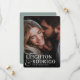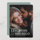 Anuncie sua data de casamento com esses cartões salve a data ousados e modernos baseados em tipografia. Design apresenta um solteiro de sangramento de cheio vertical ou uma foto orientada a retrato, com seus nomes sobrepostos em letras brancas e unidos por um e-mail sobredimensionado. Personalize com a data e o local do casamento e adicione detalhes adicionais às costas, se desejado.