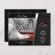 O vestido de noiva real e o terno de Groom, com exceção da tipografia de data sobre um grande castelo branco com tapete vermelho. Um profundo e rubi pico vermelho de bolso mostrando a data do casamento com noiva e nomes de noivos conectados a um nó de amor de diamante em um rico damasco preto com limite de sotaque de diamante.