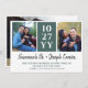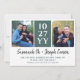 Guarde o cartão com duas fotos em um lado e uma grande foto no outro. Adicione sua data de casamento em letras brancas em negrito contra um fundo verde. Seus nomes em um encantador roteiro de pincel preto.