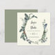 Este veraneio de inverno no casamento de marfim... salve o cartão de encontro é perfeito para um casamento clássico. A design de outono ou inverno moderna apresenta uma elegante paisagem verde-aquática e folhas de eucalipto de oliveira com uma sensação de feriado rústica.