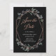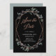Esta moda e elegante cerimônia de casamento, salvo a carta de data, apresenta uma forma geométrica falsa rosa dourada, cercada por belos galhos verdes, com a tipografia do rosa dourado na moda faux, num fundo preto rico.