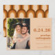 Groovy Retro 70s Design em Brown e Sand Wedding Salve a data com sua foto