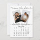 Salve o cartão liso Personalizado de Data Casamento de Ricaso ... adicione seu próprio texto e fotografia a esta elegante data de calendário personalizado ... com padrão de linha listrada em preto e branco e detalhes cardíacos delicados ... o design permite personalizar com mês, data e coração assim como duas fotografias
