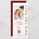 Salve a data Rosewood Red White Código QR Na moda Script Modern Wedding Salvando o Data Cards Imprimíveis Download Instantâneo Download Digital Recursos de fundo branco com sua foto personalizada. Personalize com seu texto editando o texto nas caixas de texto fornecidas. Projetado para você por ©Evco Studio www.zazzle.com/store/evcostudio