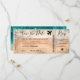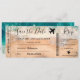 Um passe de embarque moderno e legal Salve a data na praia tropical mundial e no avião fotográfico do mar em preto e branco, perfeito para casamentos de destino.