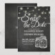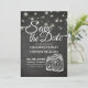 Salve as Modelos de Cartão de Convite de Casamento de Data - Elegante Salve o Script de Lettering de Data e as Luzes de String de Jar de Vintage Mason com Fundo Grunge Black Chalkboard. Um Design perfeito para o seu grande dia. Todo estilo de texto, cores, tamanhos podem ser modificados para ajustado das suas necessidades!