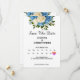 Anuncie seu dia especial em estilo com nosso azul empoeirado e floral de marfim personalizado. Apresentando uma bela ilustração aquática de rosas, esta carta elegante é perfeita para adicionar um toque de romance ao seu planejamento de casamento. Personalize com seus nomes e detalhes do casamento.